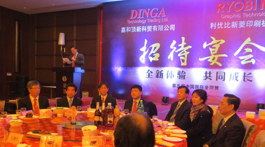 黃埔江畔,秋風(fēng)送晚。2014年11月14日,全印展第一天,展館火爆,展位精彩,參觀者們體驗(yàn)了全新的技術(shù)、感受了前沿資訊,也收獲了疲憊。晚上,為了讓客戶卸去疲乏、同時(shí)能更好的答謝客戶、增進(jìn)友誼,嘉和頂新、利優(yōu)比新菱在界龍總部園隆重舉行了答謝晚宴。嘉和頂新總經(jīng)理趙耀、日本利優(yōu)比新菱印刷機(jī)械株式會(huì)長(zhǎng)一政讓、西日本貿(mào)易株式會(huì)社副社長(zhǎng)小野實(shí)、中國(guó)印刷及設(shè)備器材工業(yè)協(xié)會(huì)副理事長(zhǎng)陸長(zhǎng)安、中國(guó)印刷設(shè)備及器材工業(yè)協(xié)會(huì)副秘書長(zhǎng)王鳳娜、中國(guó)印刷技術(shù)協(xié)會(huì)副理事長(zhǎng)曲德森、中國(guó)印刷協(xié)會(huì)名譽(yù)理事長(zhǎng)武文祥、中國(guó)印刷協(xié)會(huì)副秘書長(zhǎng)江南、上海界龍集團(tuán)總裁沈偉榮先生等行業(yè)領(lǐng)導(dǎo)、行業(yè)媒體,安徽省印刷協(xié)會(huì)、長(zhǎng)沙印刷協(xié)會(huì)、廣州印刷協(xié)會(huì),以及來(lái)自全國(guó)各地的新老用戶和行業(yè)媒體朋友等600余人出席了本次晚宴。